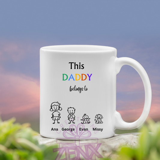 "This Dad/Grandpa Belongs To" Mug – Custom Kids & Pets Name Coffee Mug | Father’s Day Gift