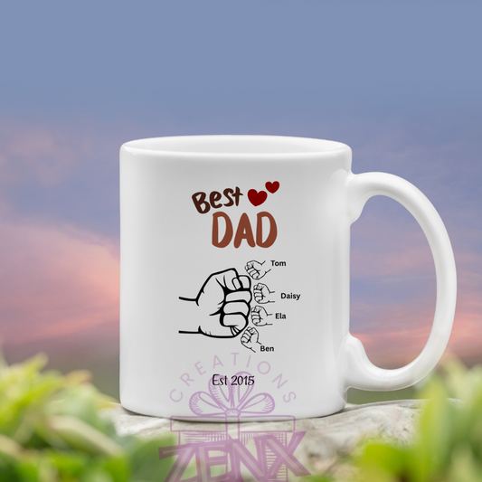 👊 Fist Bump Personalized Father’s Day Mug – Custom Coffee Mug Gift for Dad from Up to 8 Kids