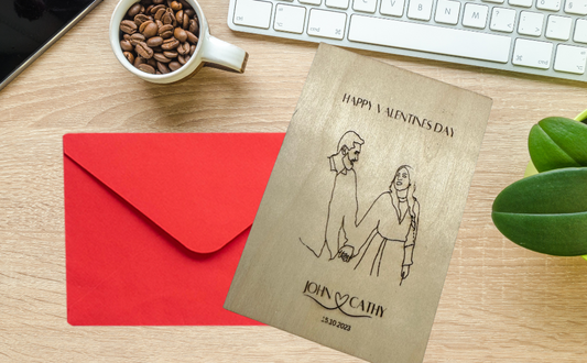 Personalized Engraved Line Art Wooden Greeting Card – A Unique & Lasting Keepsake