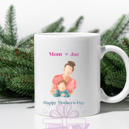 Mother & Child Sketch Mug – Personalized Mother’s Day Gift | Customized Coffee Mug with Names